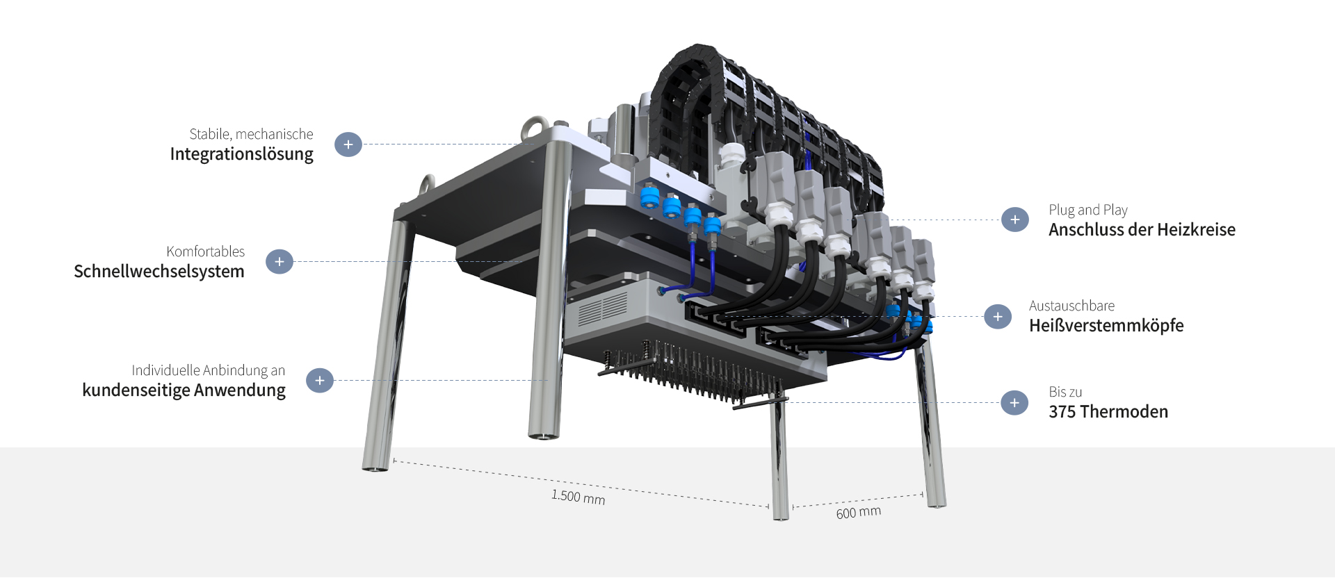Integrierte Kühlmodule für optimale Taktzeiten. Schnellwechselsystem zum Einbau in allen Hartmann-Heißverstemmsystemen.