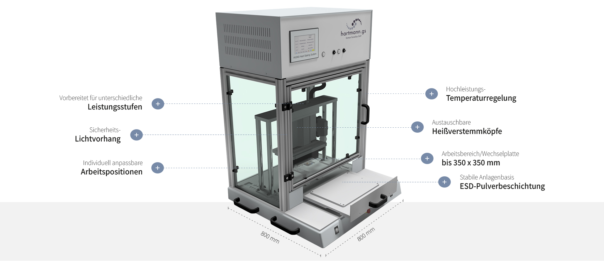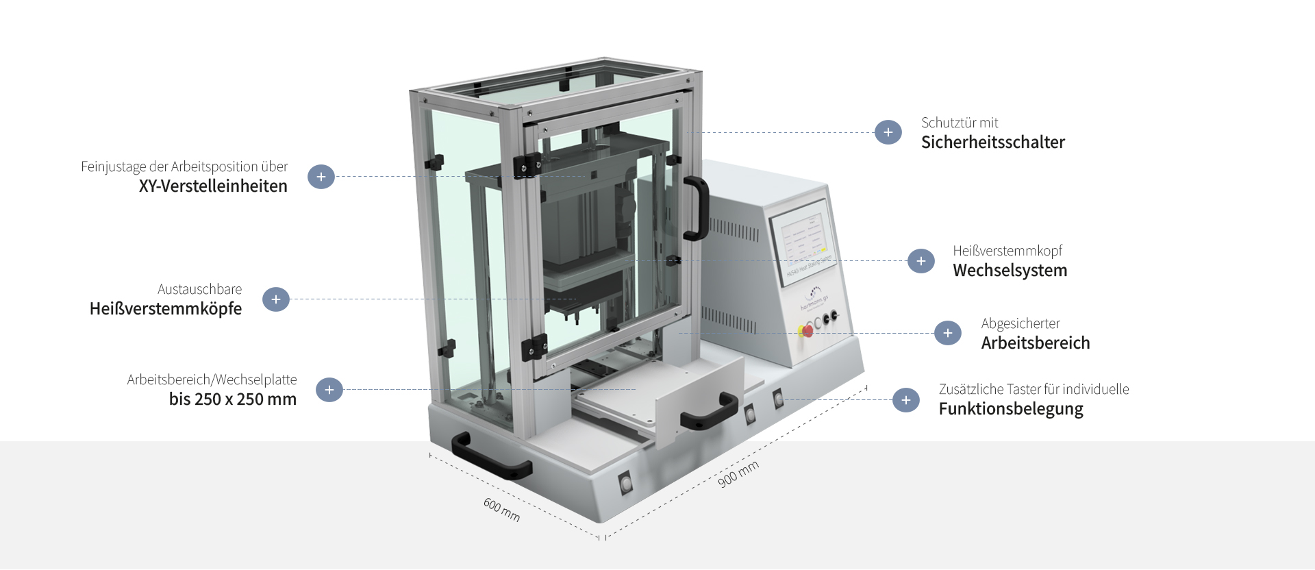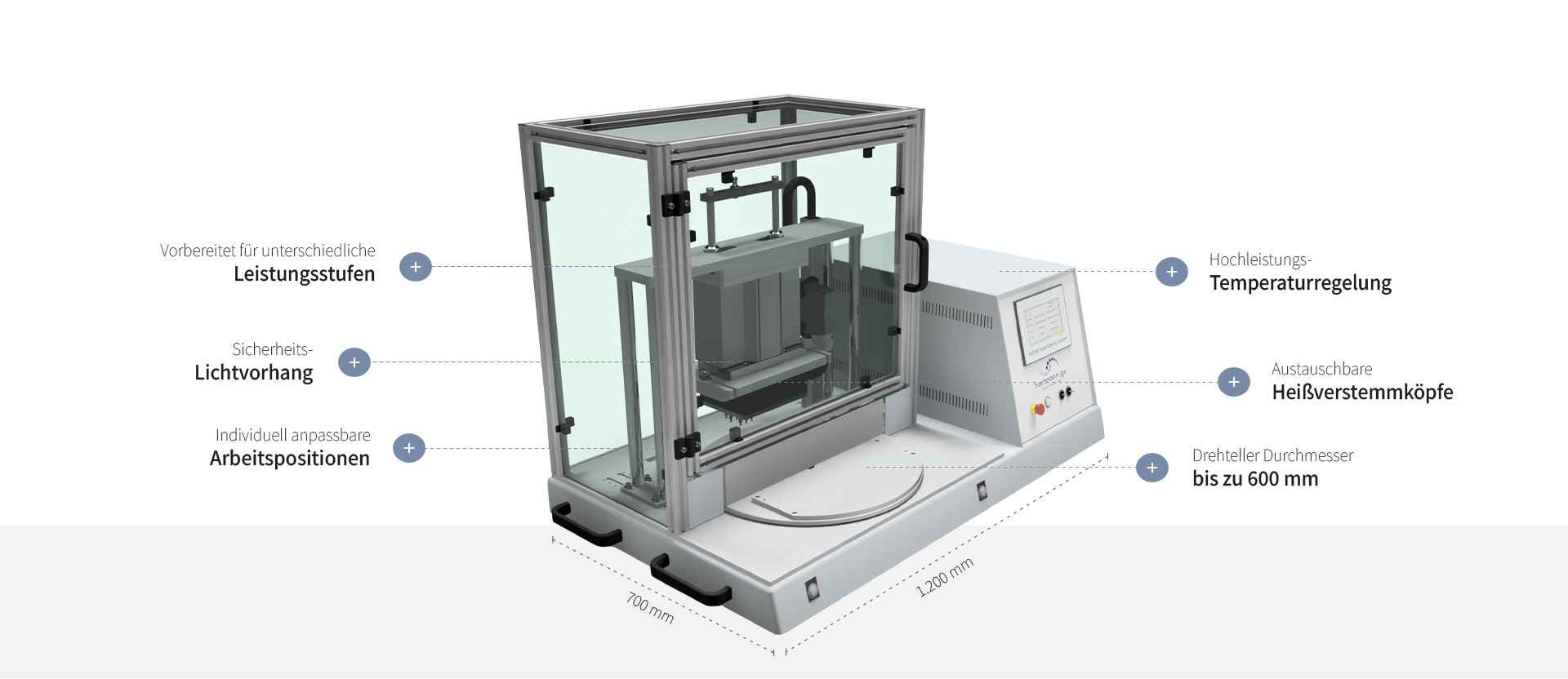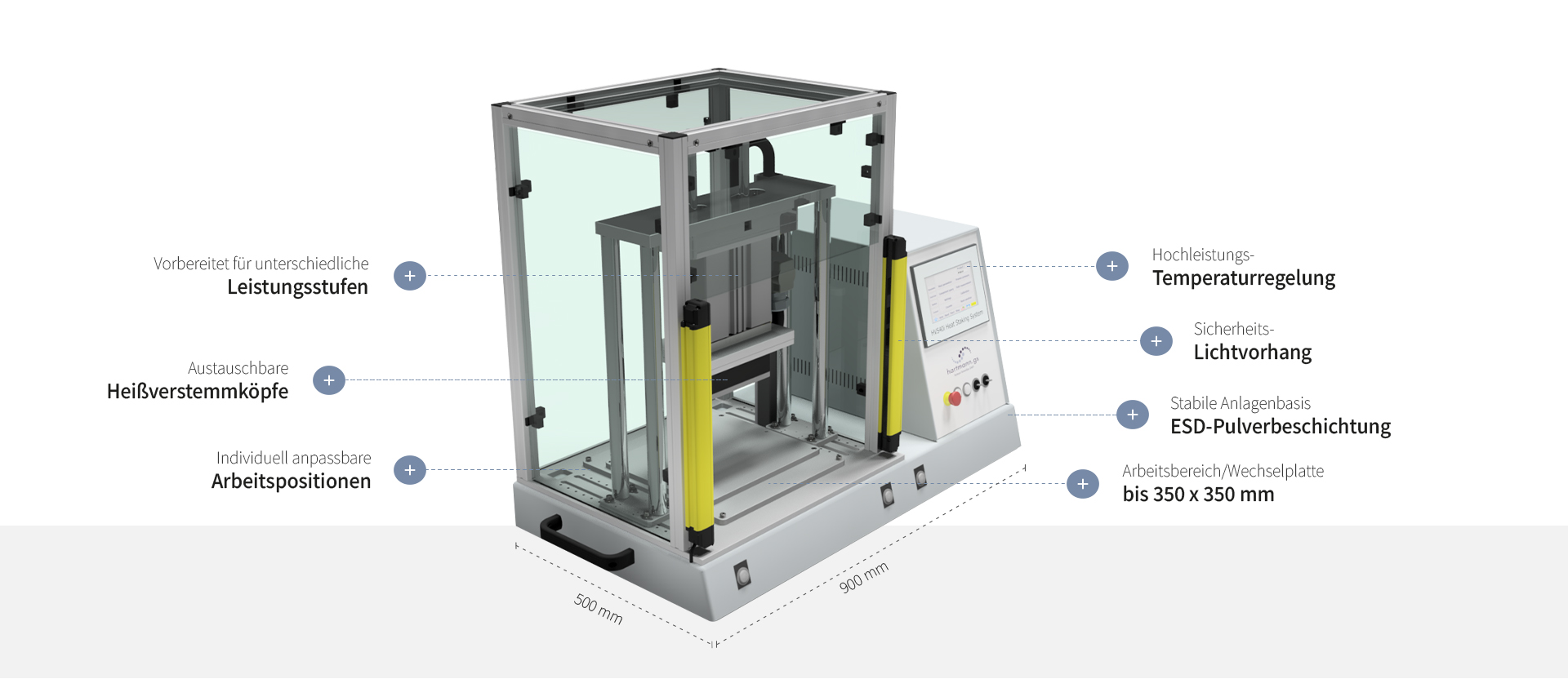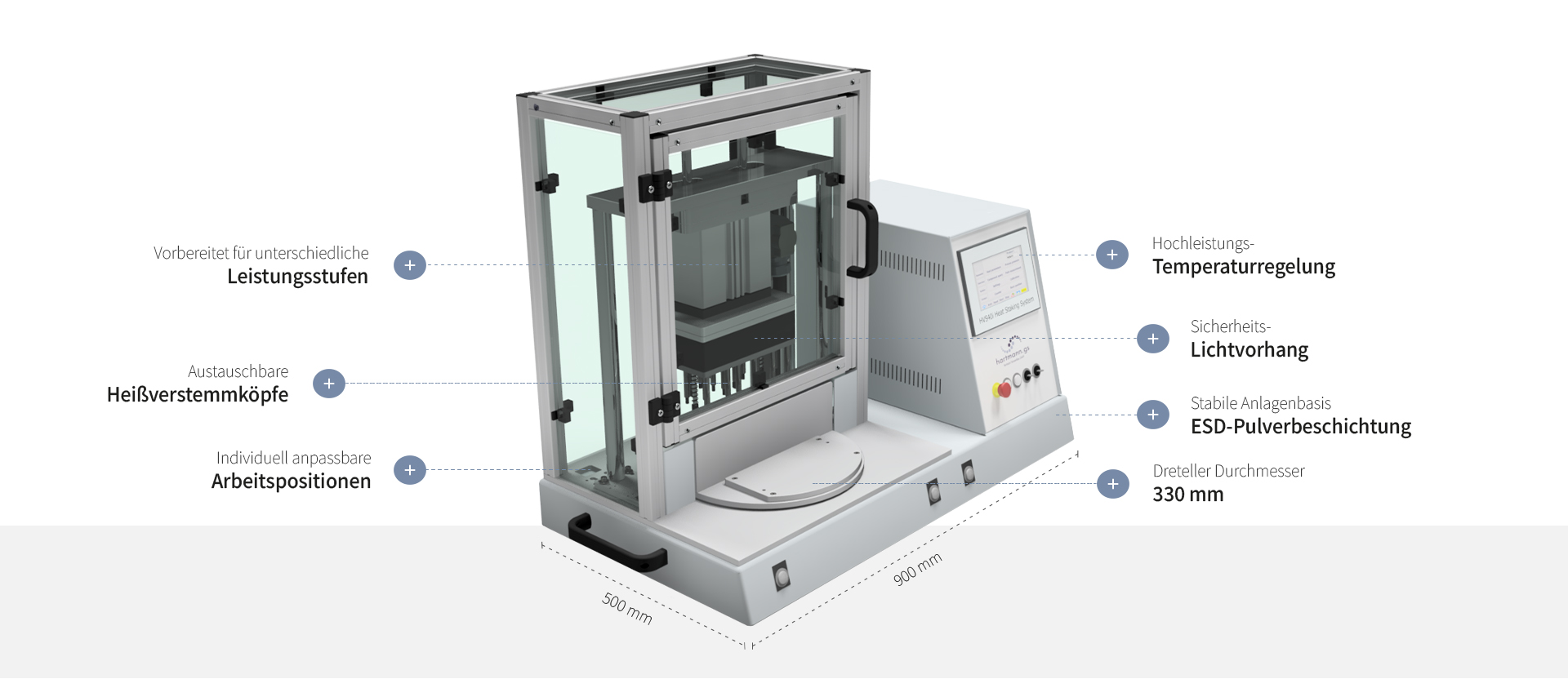 Bewährte Qualität kombiniert mit modernster Steuerungstechnik machen unsere Heißnietmaschinen zu kompakten Anlagen, die Produktivität, Flexibilität, höchste Zuverlässigkeit und Präzision vereinen.