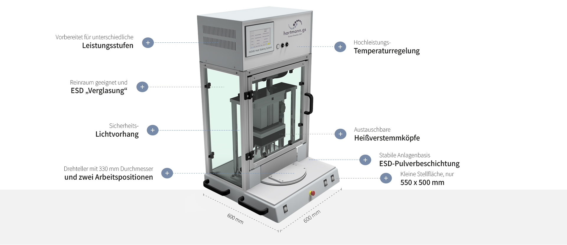 Wir haben eine Heißnietanlage für Ihr Produkt: von geringen Produktionsvolumen bis hin zur vollautomatischen Serienfertigung.